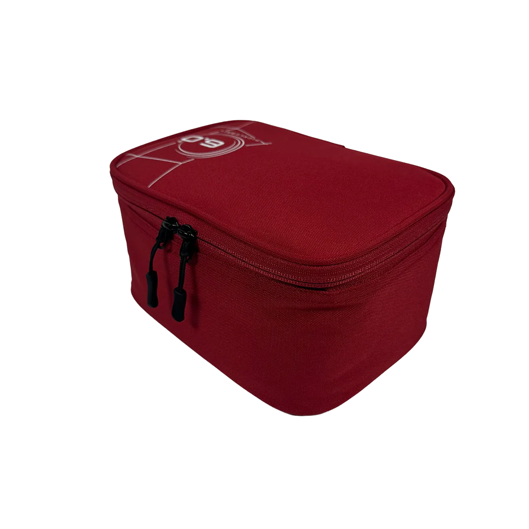 · A striking Ruby colored bag accented with white highlights, eye-catching and bold.